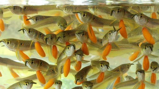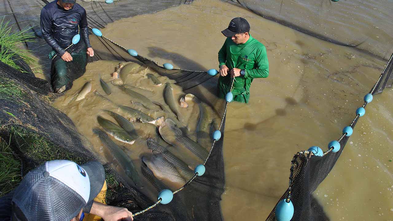 Juvenile fish of the native Amazonian species that are produced naturally or by hormonal induction of artificially breeding fish. They are the raw material for the production of high quality protein and low cost for human consumption. The video shows the parental care of the Arawana male.
